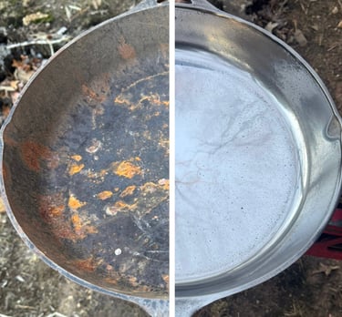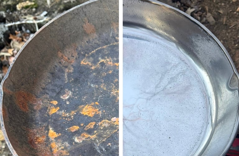 Have a rusty pan but don't want a mirror finish? We offer rust removal with sanding or electrolysis.